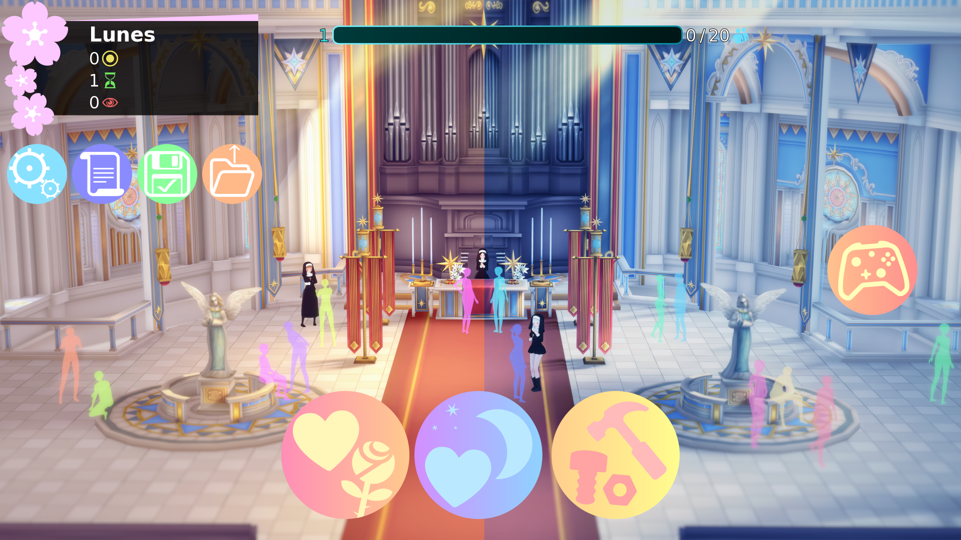 When night falls, the temple only gets more interesting... Participate in wicked ceremonies, summon creatures through dark rituals, or initiate new nuns into your faith. Only these activities will generate the profit needed to pull a forgotten religion out of ruin.